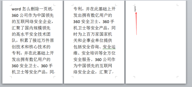 5.若要删除的某一页没有内容,则直接将光标移动到第一行的行首,然后按一下电脑键盘上的“backpace”键;