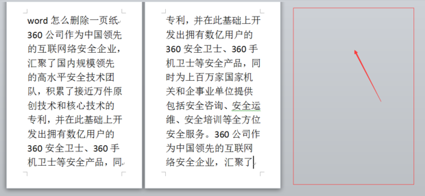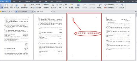 如果在删除的过程发现留下了一个空白页,那么将光标放在空白页之中,点键盘上的“delete”、“backspace”键删除它既可。
