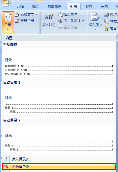 如何删除WORD中已经存在的目录