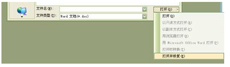 先打开word,文件-打开-找到文档-鼠标点一下选中,在右面打开选项里下拉选择打开并修复,见附件。
