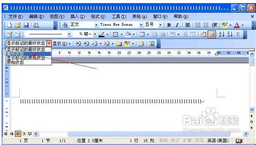 然后在文档上边的工具栏里会有关于“修订”的工具和选项出现,你在其中一个比较长的选框里选择“显示标记的最终状态”,这时你再修改文档,就可以看到你改过的地方全都有标记了。