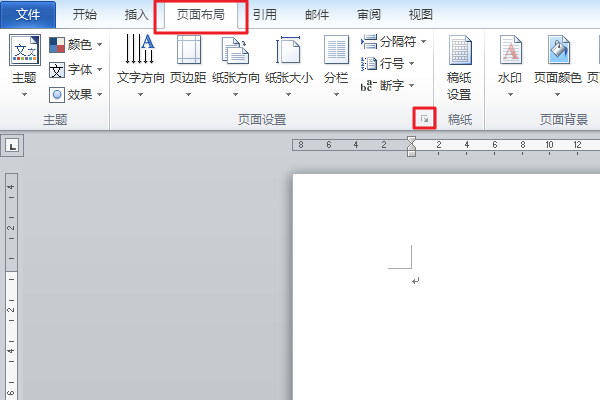 2、然后点击上方工具栏中的页面布局,再点击页面设置旁的箭头。