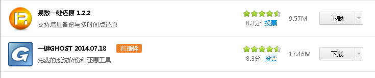 有了2款评分高的,以前用一键GHOST,在笔记本上完全没有问题,现在台式机连安装盘都安装不了!
