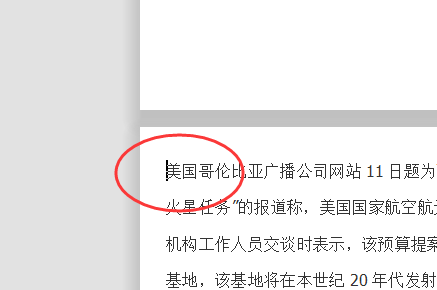 2、将鼠标放在第二页的段首位置。