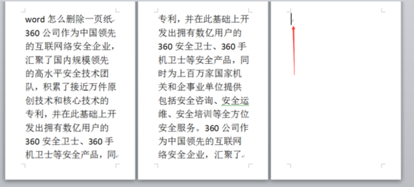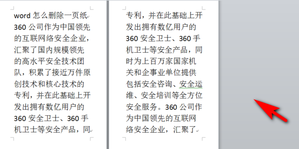 第三步:如果遇到有空白页不能删除的情况,将光标定位在空白页前一页的末尾,然后按Delete键就可以删除空白页了。