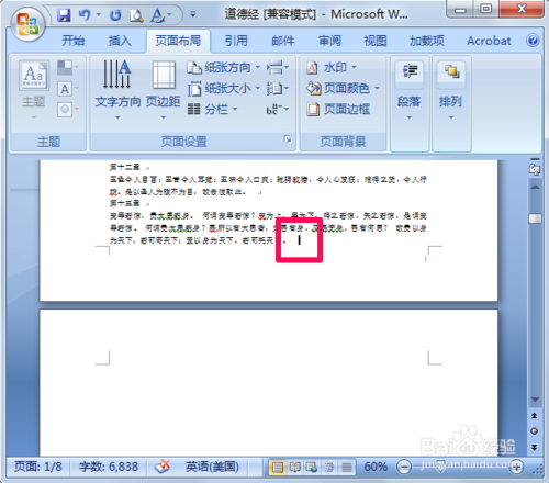 5.若要删除的某一页没有内容,则直接将光标移动到第一行的行首,然后按一下电脑键盘上的“backpace”键;