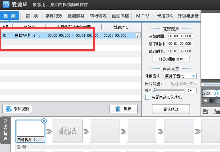 7、此时列表中出现这个视频