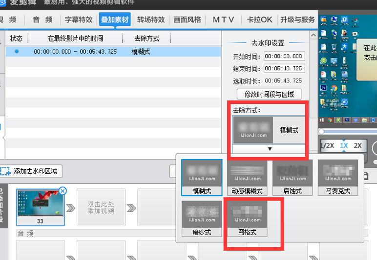然后,选择去除水印的方式,有模糊式,马赛克式,网格式等多种形式可以选择,选择合适的形式可以更加自然的去除水印,使视频更加自然不突兀。