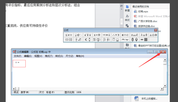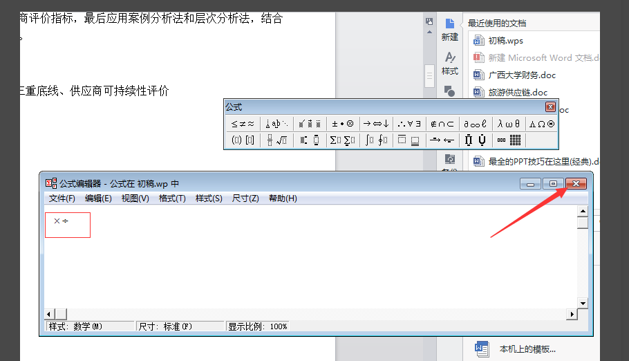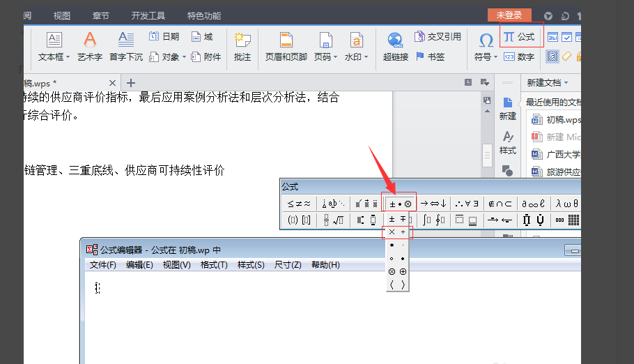 7、选中乘除号,添加到公式编辑器。