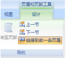 然后,取消这页(节)与上节的页眉链接:双击这页页眉,页眉和页脚工具--设计--导航,按下“链接到前一条页眉”,使之失活);