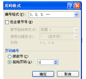 5、弹出页码格式对话框,在编号格式处选择罗马数字格式;在页码编号处选择起始页码,输入框中输入1;