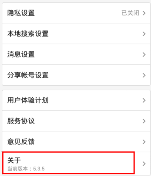 3、设置里面找到关于(会显示浏览器版本信息的):