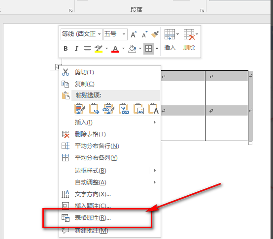 其二:选中单元格,右键选择表格属性。