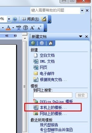 1、在Office停止工作后,一般只能以安全模式进入到WORD。打开任务窗格(通过文件菜单中的新建项也可以)中的新建文档功能,点击“本机上的模板“。
