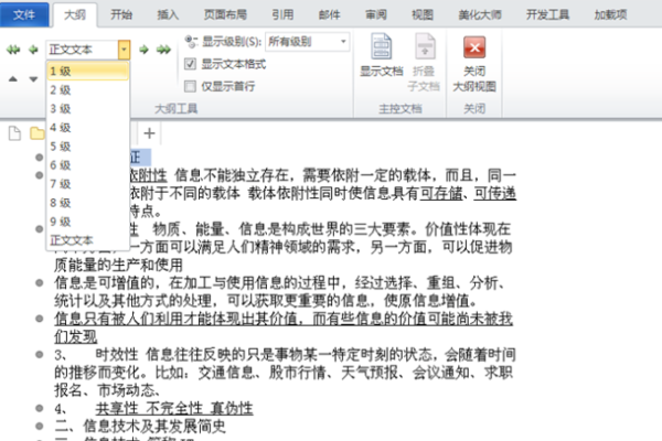 三、然后,在文档中依次选择需要拆分的文件标题,并且设置大纲级别为1级。