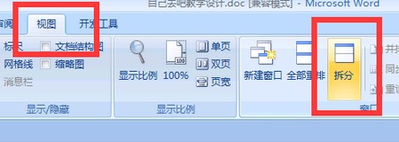 1、打开需要进行拆分的Word文档,点击【视图】菜单,这时在视图下方出现一个子菜单,点击“拆分”。