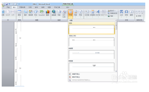 2、为页面设置页眉页脚。在"插入"中,选择“页眉".插入。