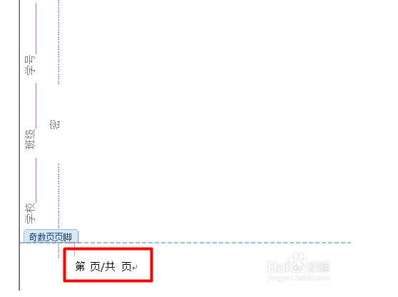 4、接着编辑页脚,按一般试卷的页脚格式,使其显示当前页码与总页码数。所以先按如下图输入文字。