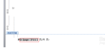 7、对显示总页码数的,操作方法与显示当前页码的大致相似,只是它在大括号中输入的字符与显示当前页码的不同,如下图所示。
