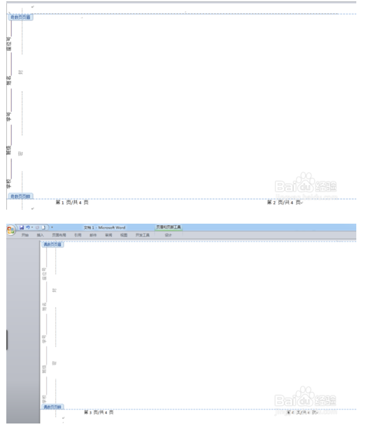 3、编辑页眉,在页眉中加入文字。在"键入文字"中输入所需文字,并在两栏中调整位置,使其合适分布。