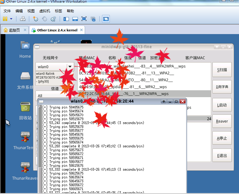3.启动虚拟机 进入系统加载网卡用mINIDWER-GTK 穷举 跑PIN 一键破解