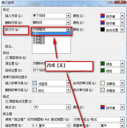 工具,选项,修订,把记号线设置为无试试