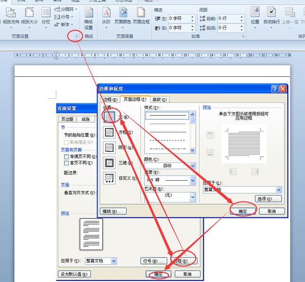 1、页面边框或段落边框。打开页面设置----边框---边框和页面边框选项卡下均设置无框样式。