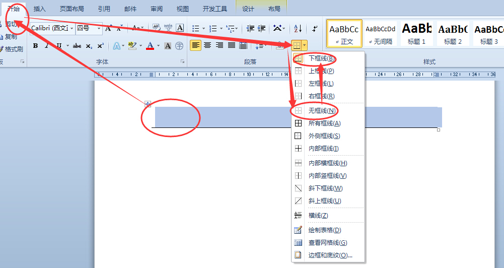 2、表格边框。删除表格或设置表格框线为无框线样式。
