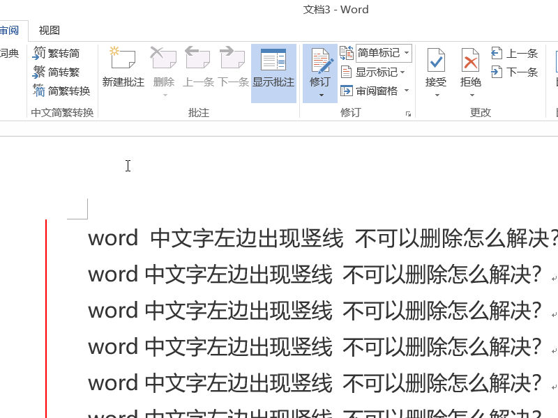 word中文字左边出现竖线 不可以删除怎么解决?
