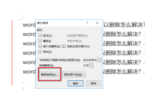 4、在弹出的修订选项窗口中,点击打开高级选项工具。
