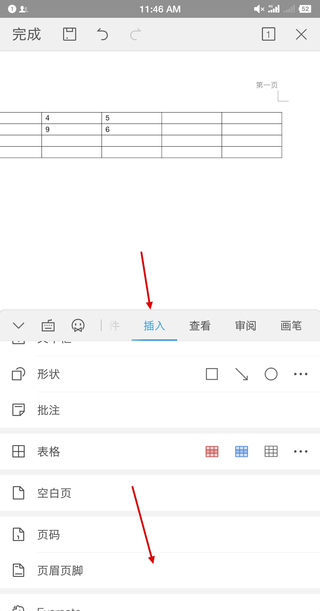 3.在功能页面中找到插入选项,在插入选项下方的类目中找到页眉页脚,点击页眉页脚,如下图所示。
