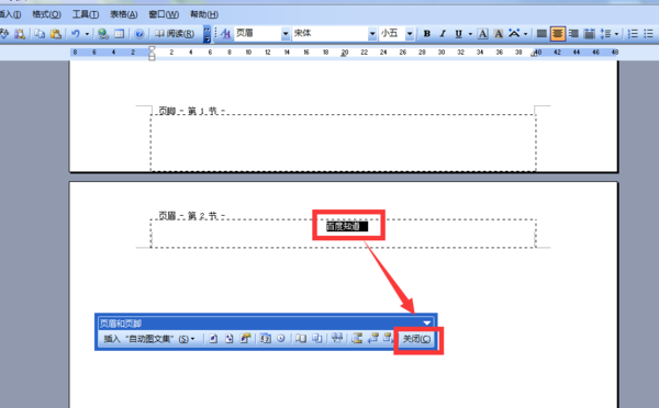 f、将页眉页码文本框放至\相应位置:当光标高为十字箭头时,按左键不放拉至相应位置即可。