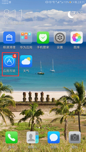 1、打开手机,找到“应用市场”选项