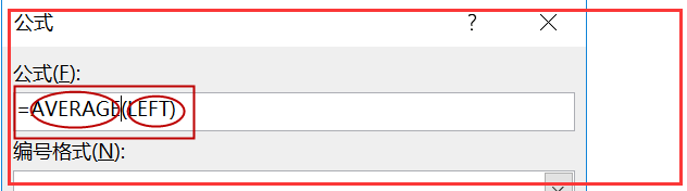 6.在等号后面输入“AVERAGE(LEFT)”/“AVERAGE(ABOVE)”。点击“确定”。