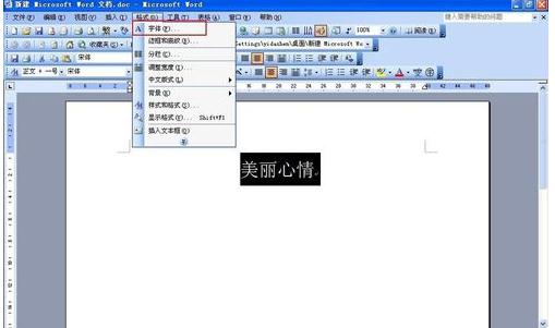 2、利用字体对话框格式化:选择文本——单击“格式”菜单——点击“字体”出现字体对话框