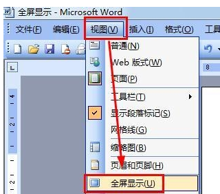 第二种、使用菜单栏的全屏显示功能按钮,打开word后,点击菜单栏视图菜单下的全屏显示就可以让word全屏显示了。