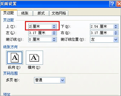 2、在页边距设置的距离页边距”上”边设置中,把默认的2.54厘米改成2厘米,当然还可以改成其他更小的数字,然后点击确定就可以了。