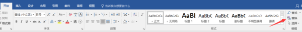 1、在开始菜单中,找到段落设置,点击段落文字右侧的一个向下的箭头符号。
