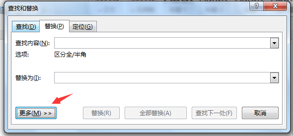 3、在“替换”弹出的对话框下点击“更多”。