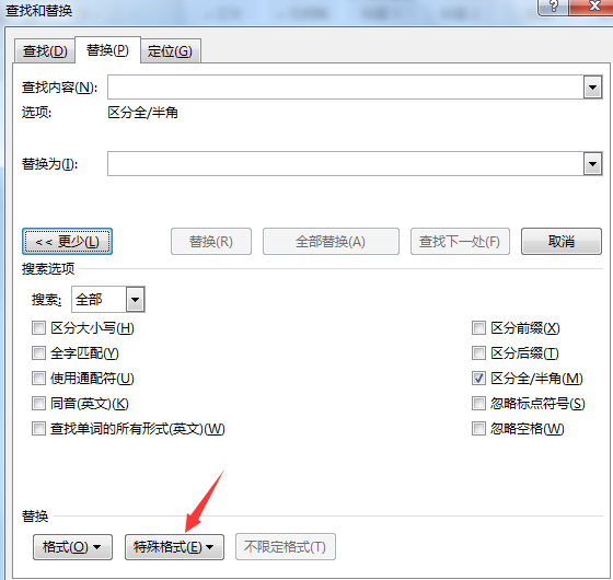 3 选择“替换”点“高级”,在里面选择“使用通配符”以后下面有一个“特殊字符”字的开头,按住shift的时候再点下鼠标,选择空白页,再删除(解决了我的问题)