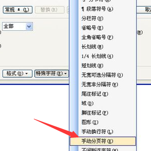 4、在“特殊格式”的下拉单下选择“手动分页符”。