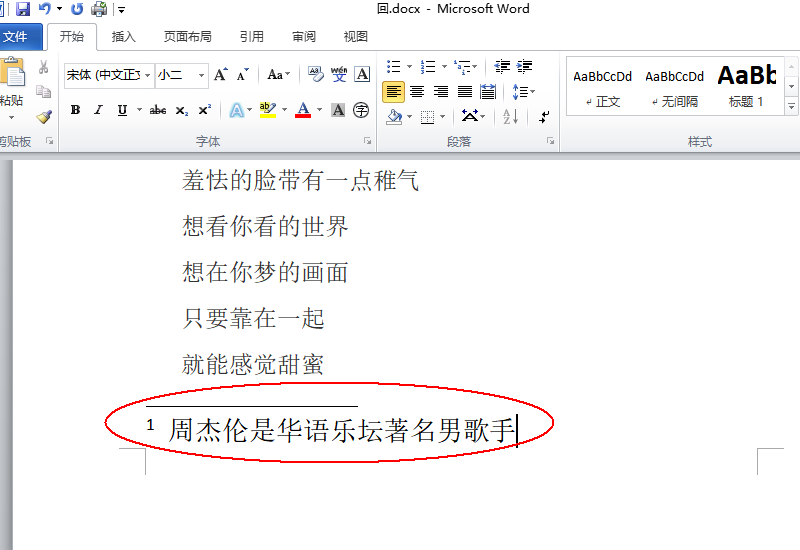 3、返回主文档,发现已成功在WORD中插入脚注。