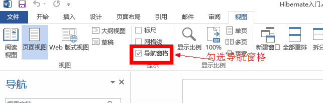在“视图”功能区的“显示”分组中选中“导航窗格”复选框。
