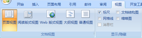 单击视图选项卡上文档视图中的页面视图,即可由大纲视图变为页面视图。