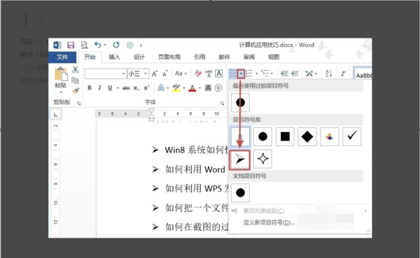 3、此时指定的符号将添加到了项目符号库列表中,选择该符号即可将其应用到段落中,如图4所示。
