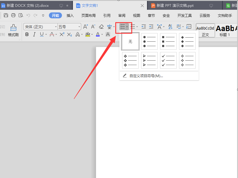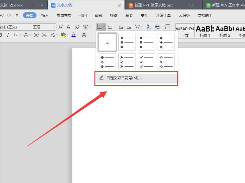 3.这里就可以选择一些系统已有的内容。也可以点击【定义新项目符号】进行自定义符号图案;
