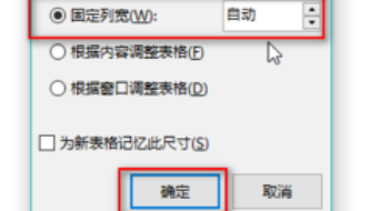 2、设置好列数和行数,点击“确定”。你可以选择“固定列宽”,也可以线选择其他选择,之后再处理列宽。“固定列宽”右侧的方框中默认是“自动”,“自动”的意思就是根据你的列数平均分布各列大小,整个表格的宽度刚好和页面相称。你也可以删除“自动”属于固定的数值,单位是厘米哦。