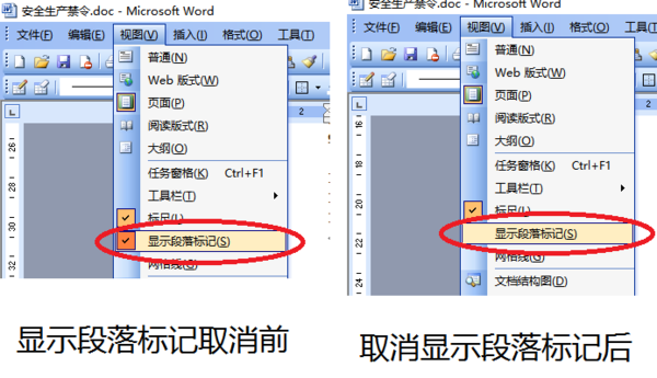 Word2003中隐藏换行符