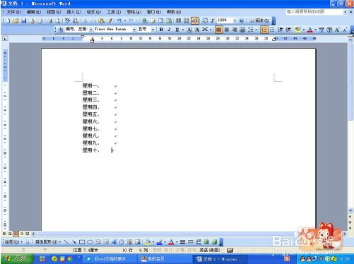 4、点击确定后,文档里即出现了设置好的“星期一”字样,如图所示: