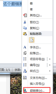 2、选定这段文字,右击从快捷菜单中点击超链接命令;